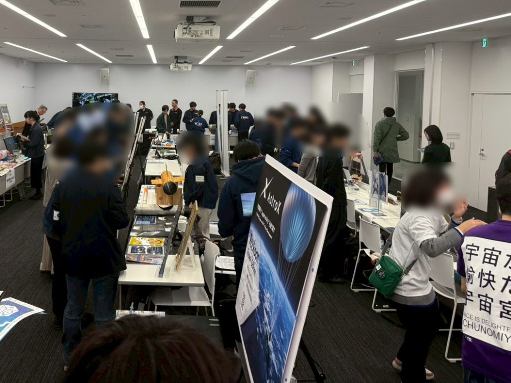展示会場には、学生団体や企業・団体のブースが並び、熱心に活動内容を紹介していました。ロケットだけでなく、人工衛星や宇宙服の展示など、内容は多岐にわたります。お互いのブースを訪ねての交流も活発に行われていました。また、参加団体等による講演会も行われました。